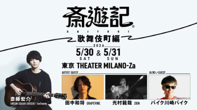 斎藤宏介(UNISON SQUARE GARDEN/TenTwenty)さんが歌舞伎町で開催するライブイベントに田中和将が参加します